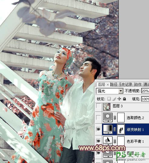 photoshop调出淡橙色效果外景情侣婚片写真照
