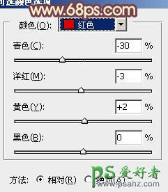 8、创建可选颜色调整图层,对红,蓝进行调整,参数设置如图15,16,效果如图17。