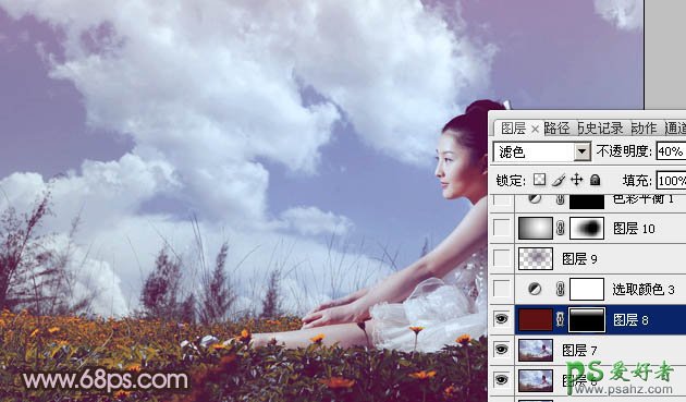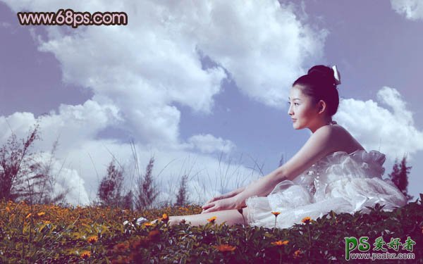 photoshop给草原上的唯美少女婚片调出紫橙艺术色调