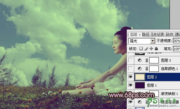 4、新建一个图层,按Ctrl + Alt + ~ 调出高光选区,新建一个图层填充颜色:#F9EEA1,混合模式改为“强光”,不透明度改为:30%,效果如下图。