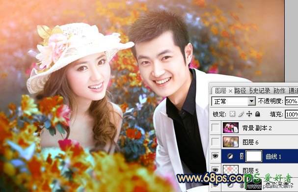 photoshop调出喜气浪漫的花景少男少女情侣艺术婚片
