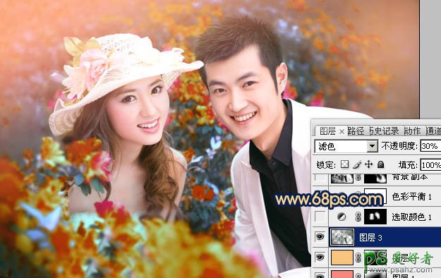 5、按Ctrl + Alt + ~ 调出高光选区,按Ctrl + Shift + I 反选。新建一个图层填充颜色:#144225,混合模式改为“滤色”,不透明度改为:30%,效果如下图。这一步给图片增加一些补色。