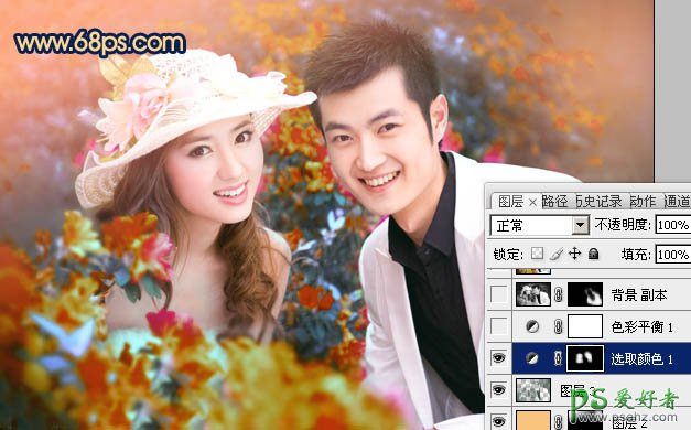 photoshop调出喜气浪漫的花景少男少女情侣艺术婚片