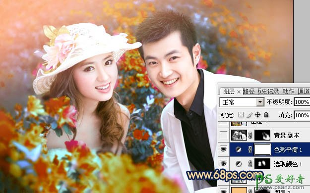 photoshop调出喜气浪漫的花景少男少女情侣艺术婚片