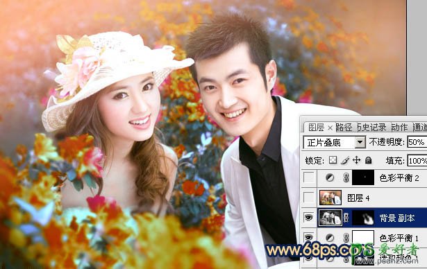 8、把背景图层复制一层,按Ctrl + Shift + ] 置顶,按Ctrl + Shift + U 去色,混合模式改为“正片叠底”,不透明度改为:50%,按住Alt键添加图层蒙版,用白色画笔把人物衣服部分擦出来,增强细节部分。