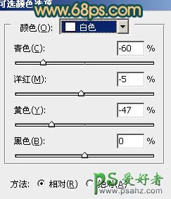 4、创建可选颜色调整图层,对黄,白进行调整,参数设置如图8,9。确定后把蒙版填充黑色,用白色画笔把人物部分擦出来,效果如图10。这一步稍微把人物部分调亮。