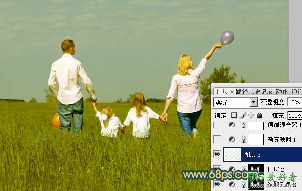 6、按Ctrl + Alt + ~ 调出高光选区,新建一个图层填充颜色:#F0FDF1,混合模式改为“柔光”,不透明度改为:10%,效果如下图。