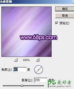 9、新建一个图层,按Ctrl + Alt + Shift + E 盖印图层。执行:滤镜 > 模糊 > 动感模糊,参数设置如图19。确定后把图层混合模式改为“柔光”,效果如图20。这一步是增强图片的梦幻效果。