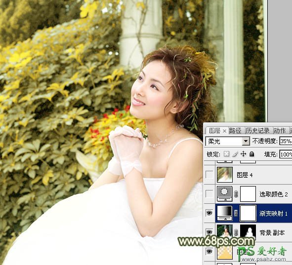 6、创建渐变映射调整图层,颜色设置如图11,确定后把图层混合模式改为“柔光”,不透明度改为:35%,效果如图12。
