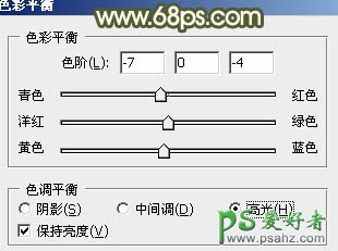 9、创建色彩平衡调整图层,对高光进行调整,参数设置如图17,效果如图18。