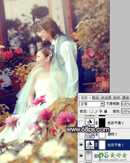 PS调色教程:给流行的外景婚片调出橙蓝混合色