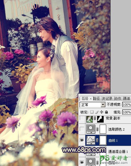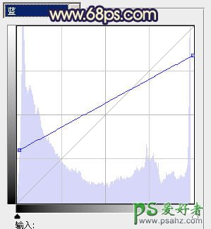 4、创建曲线调整图层,对蓝色进行调整,参数设置如图8,效果如图9。这一步是给图片增加一些蓝色,同时也增加图片的橙色。人物肤色部分会有一些偏色,后面会修复。