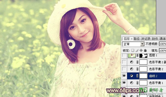 photoshop给油菜花地里的柔美少女调出粉黄色效果