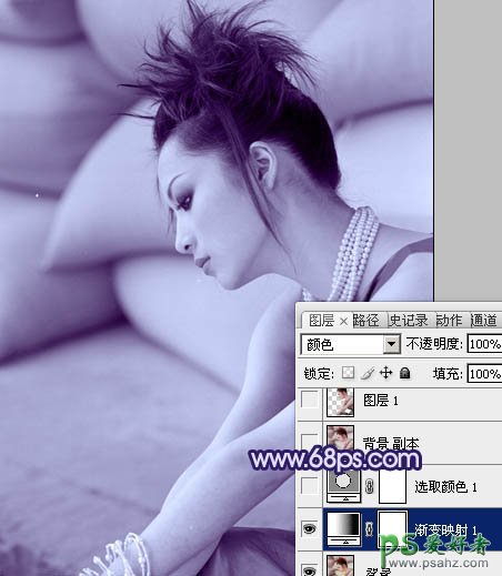 1、打开原图素材,创建渐变映射调整图层,颜色设置如图1,确定后把图层混合模式改为“颜色”,效果如图2。这一步是快速把背景转为单色。