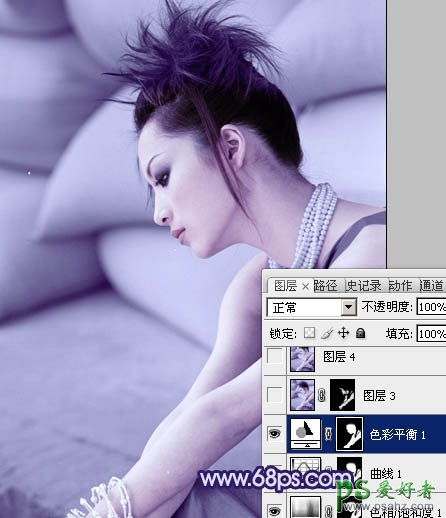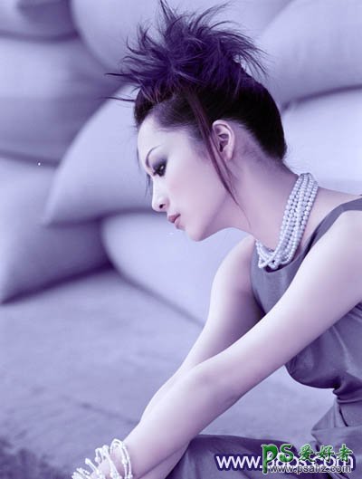 PS调色教程:给室内个性美女图片调出淡蓝色效果