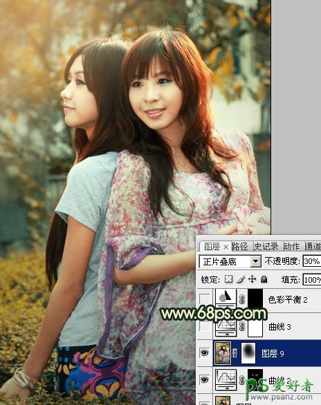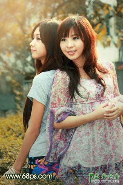 PS给春日里一对漂亮的姐妹图片调出柔美的橙绿色