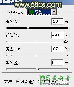 1、打开原图素材,创建可选颜色调整图层,对黄,绿进行调整,参数设置如图1,2,效果如图3。这一步是把画面中的绿色转为橙色。