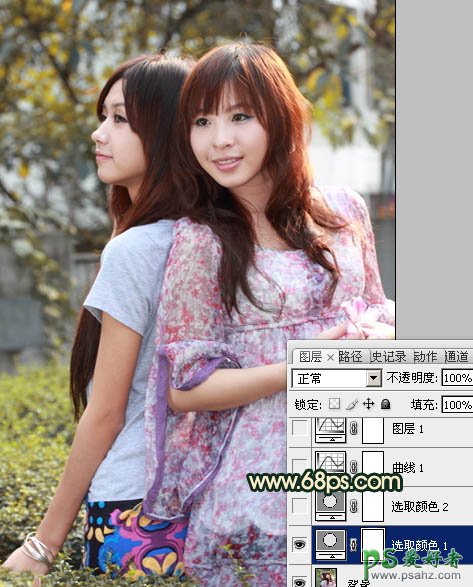 PS给春日里一对漂亮的姐妹图片调出柔美的橙绿色