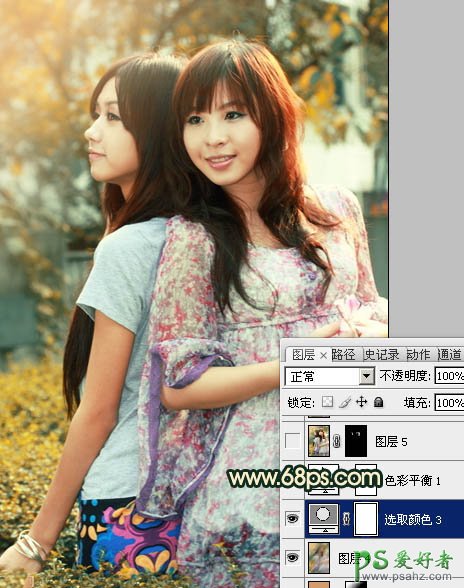 PS给春日里一对漂亮的姐妹图片调出柔美的橙绿色