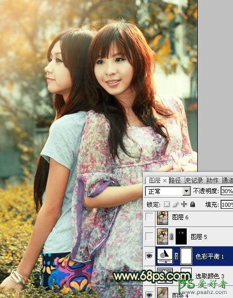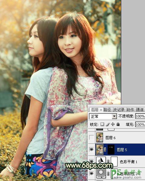 PS给春日里一对漂亮的姐妹图片调出柔美的橙绿色