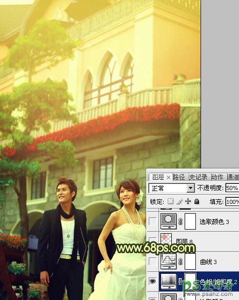 photoshop调出柔美的青黄色情侣婚片艺术照