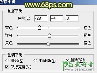 3、创建色彩平衡调整图层,对阴影、中间调、高光进行调整,参数设置如图6 - 8,效果如图9。这一步简单消除画面中多余的红色。