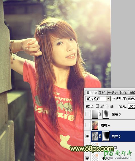 11、新建一个图层,盖印图层。按Ctrl + Shift + U 去色,混合模式改为“正片叠底”,不透明度改为:60%,按住Alt 键添加图层蒙版,用白色画笔把边缘部分擦出来,效果如下图。这一步是给图片增加暗角。