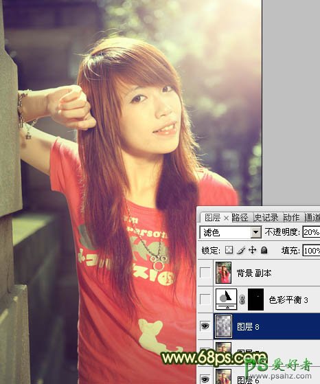 15、按Ctrl + Alt + ~ 调出高光选区,按Ctrl + Shift + I 反选,新建一个图层填充颜色:#3A134D,混合模式改为“滤色”,不透明度改为:20%,效果如下图。