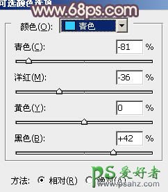 2、创建可选颜色调整图层,对黄、绿、青、蓝、洋红进行调整,参数设置如图4 - 8,效果如图9。这一步是把画面的颜色调匀。