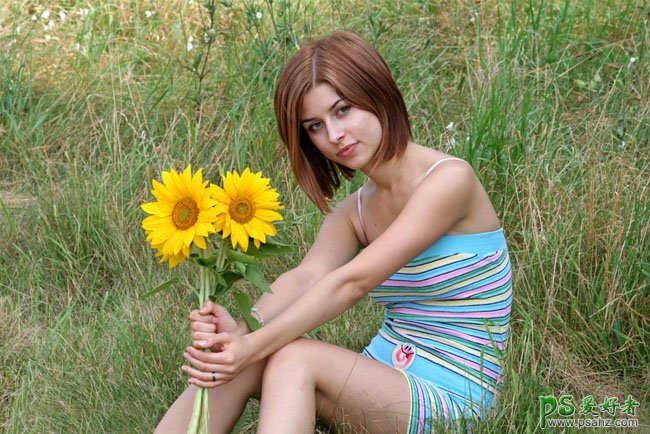 今天我们来教大家学习一篇影楼后期调色教程,PS美女照片后期调色实例教程,photoshop给向日葵美女图片调出暖洋洋的效果,素材图片空间感比较小,有点不透气的感觉。处理的时候可以把画面的某个边角部分模糊处理,再适当加上高光。这样画面的层次就会强很多。