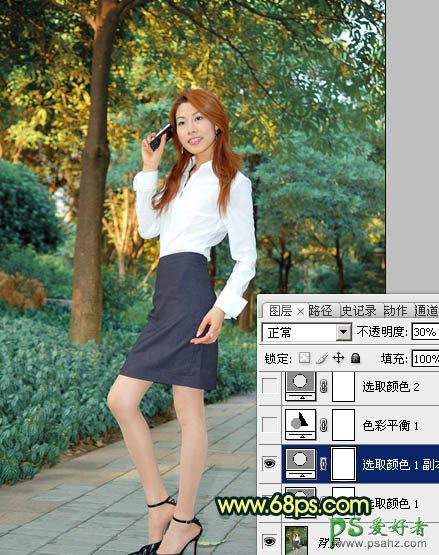 2、按Ctrl + J 把当前可选颜色调整图层复制一层,不透明度改为:30%,效果如下图。