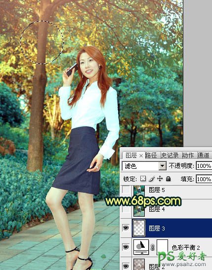 8、新建一个图层,用椭圆选框工具拉出下图所示的选区,按Ctrl + Alt + D 羽化60个像素后填充颜色:#6B3F23,混合模式改为“滤色”。