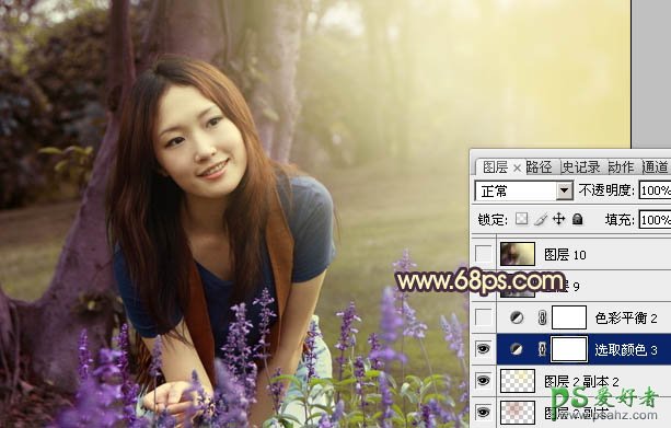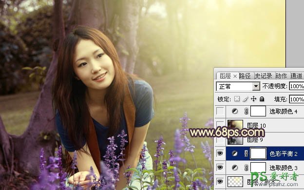 PS调色教程:给树林中的漂亮MM写真照调出温暖的阳光色