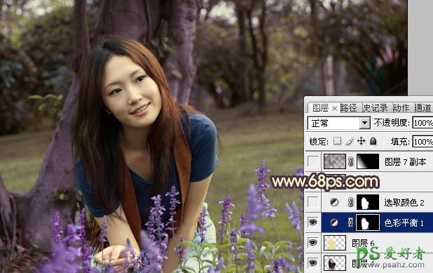 PS调色教程:给树林中的漂亮MM写真照调出温暖的阳光色