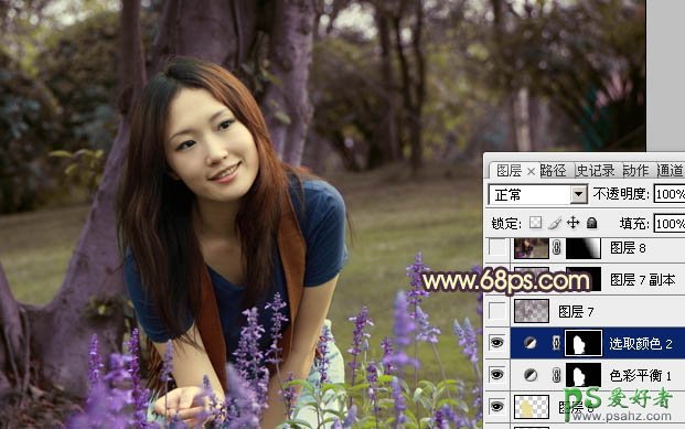 PS调色教程:给树林中的漂亮MM写真照调出温暖的阳光色