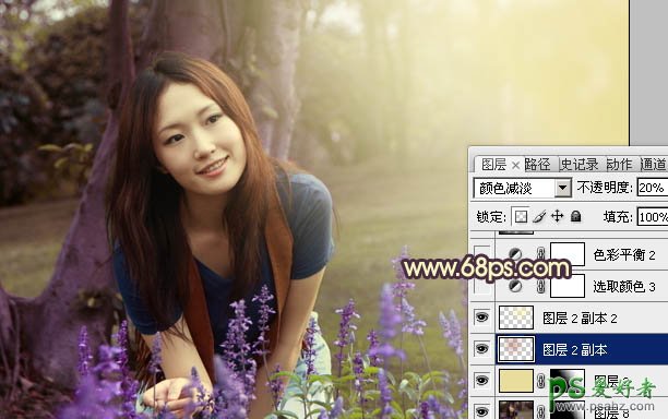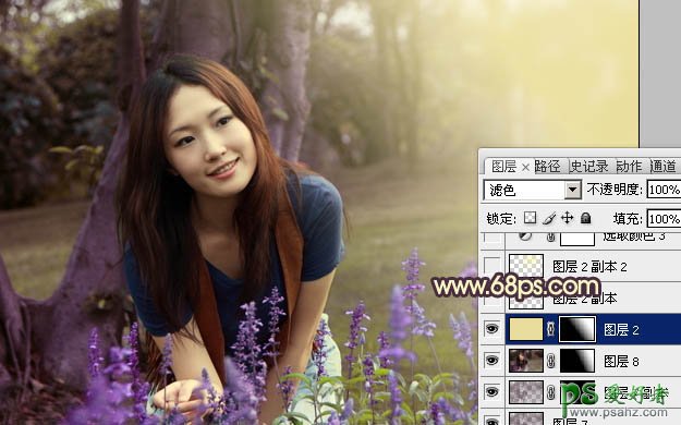 10、新建一个图层,填充颜色:#E8DD9B,混合模式改为“滤色”,加上图层蒙版,只保留右半部分,其它部分用黑色画笔擦掉。这一步是给画面增加高光。