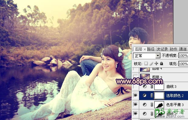 PS给水景情侣婚片写真照调出唯美的蓝红色