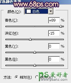 6、创建可选颜色调整图层,对白色进行调整,参数设置如图11,效果如图12。这一步是给人物脸部的高光部分增加一些补色。