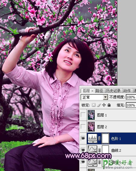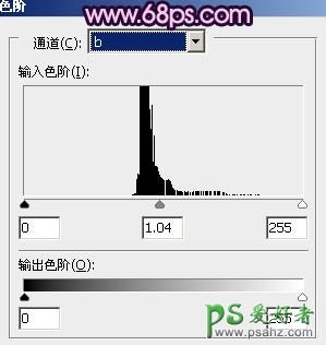 5、创建色阶调整图层,对b通道进行调整,参数设置如图12,效果如图13。确定后新建一个图层,盖印图层。选择菜单:图像 > 模式 > RGB颜色,选择不合拼。
