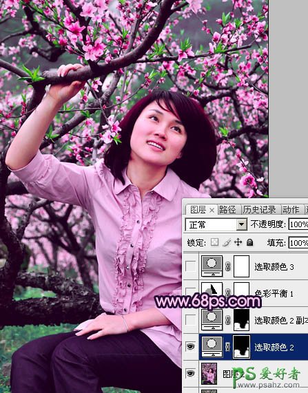 photoshop调出春日外景桃花色清纯MM生活照