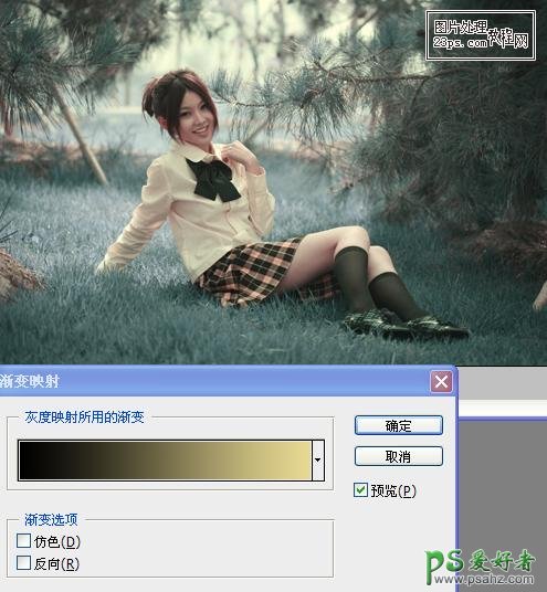 PS调色教程:给外景漂亮的丝袜美女调出淡雅的青蓝色