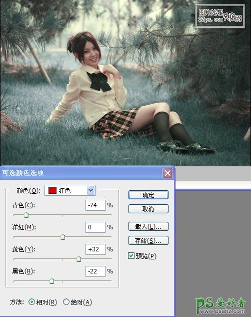 3、新建可选颜色调解层调节颜色,并复制此图层,将复制层不透明度降低到30%。