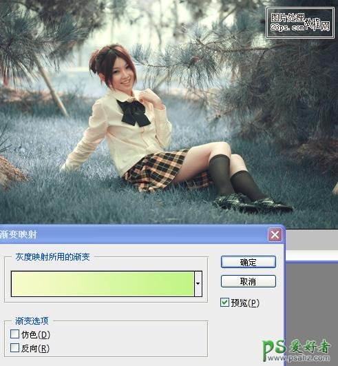 PS调色教程:给外景漂亮的丝袜美女调出淡雅的青蓝色