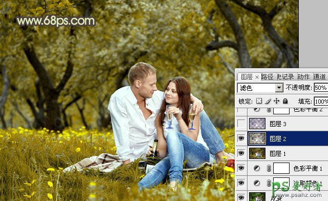 3、新建一个图层,按Ctrl + Alt + Shift + E 盖印图层。按Ctrl + Alt + ~ 调出高光选区,按Ctrl + Shift + I 反选,按Ctrl + J 把选区部分图像复制到新的图层,混合模式改为“滤色”,不透明度改为:50%,效果如下图。这一步是增强暗部的亮度。