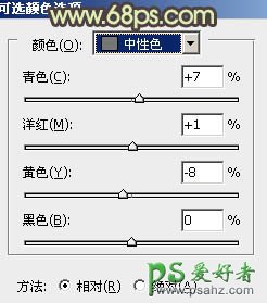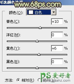 6、创建可选颜色调整图层,对黄、爱、中性色进行调整,参数设置如图10 - 12,效果如图13。这一步稍微调整整体颜色,加强图片层次感。