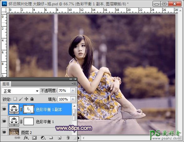 PS调色教程:给街景漂亮少女艺术照调出老照片效果