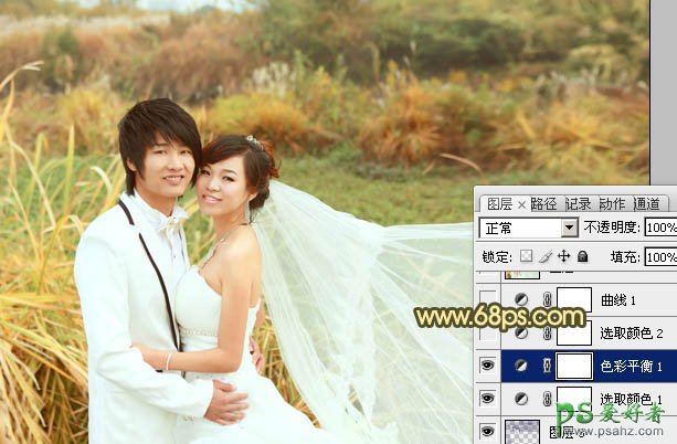 photoshop给情侣婚纱照调出暖暖的秋景金色效果