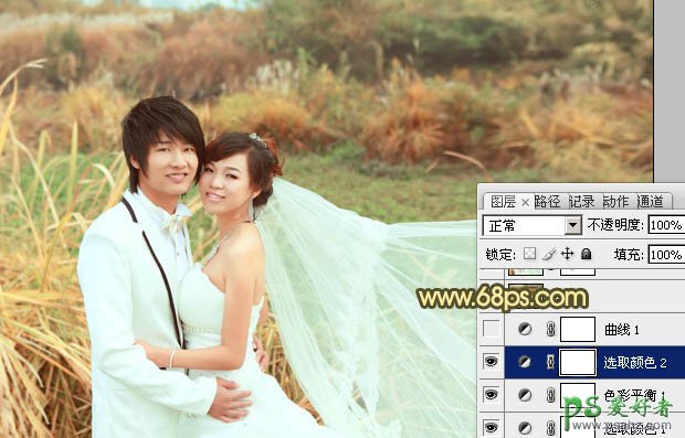 photoshop给情侣婚纱照调出暖暖的秋景金色效果