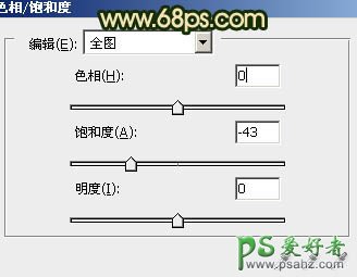 1、打开原图素材,创建色相/饱和度调整图层,适当降低全图饱和度,参数设置如图1,效果如图2。