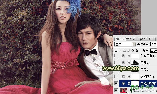 photoshop给情侣婚纱照调出暖暖的秋景金色效果